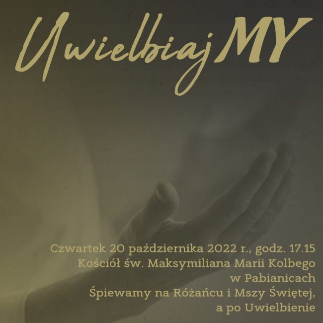 W czwartek 20 października naszą modlitwę różańcową ubogaci zespół „UwielbiajMY“, który swoim sercem i talentami zaprasza do modlitwy i uwielbienia Boga przez słowo i dźwięk, przez śpiew na Różańcu i Mszy św. Zespół obecnie jest w trasie z nową płytą, którą będzie można nabyć za dobrowolną ofiarą.
